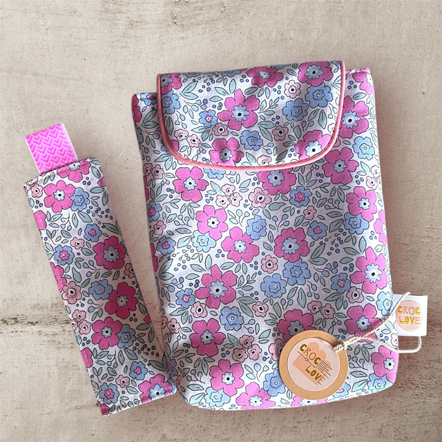 Pochette à livre format poche et son marque-page assorti en coton rigidifié